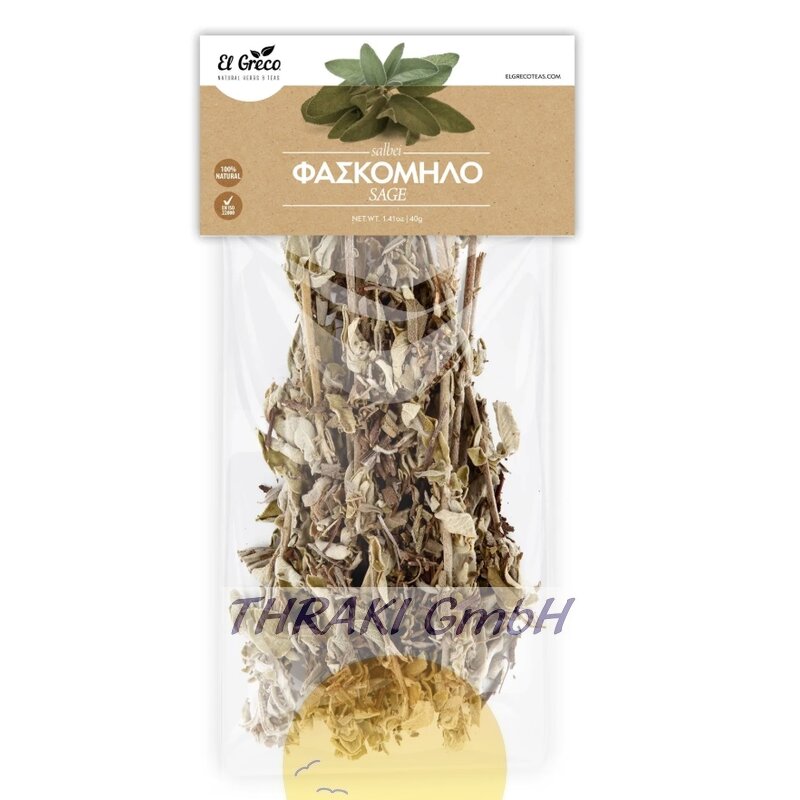 Heute werden seine Blätter und Blüten in der Pharmazie, in der Parfümerie, in Gewürzen und Lebensmitteln verwendet. In der Küche wird es zum Würzen verschiedener Brühen, Lebensmittel und Essig verwendet und gilt auch als Imkerpflanze, die feinen Honig liefert. Sein Geschmack ist ziemlich würzig und passt gut zu fettem Fleisch und Käse. Es wird hauptsächlich als Getränk verwendet. Es sollte mit Vorsicht verwendet werden, da es aufgrund von Überbeanspruchung, die durch die Hauptsubstanz Thujon der Pflanze verursacht wird, zu Lebensmittelvergiftungen kommt. "Bagatzounis Salbei" ist ein rein griechisches Produkt, das den hohen Qualitätsansprüchen der Kunden gerecht wird.