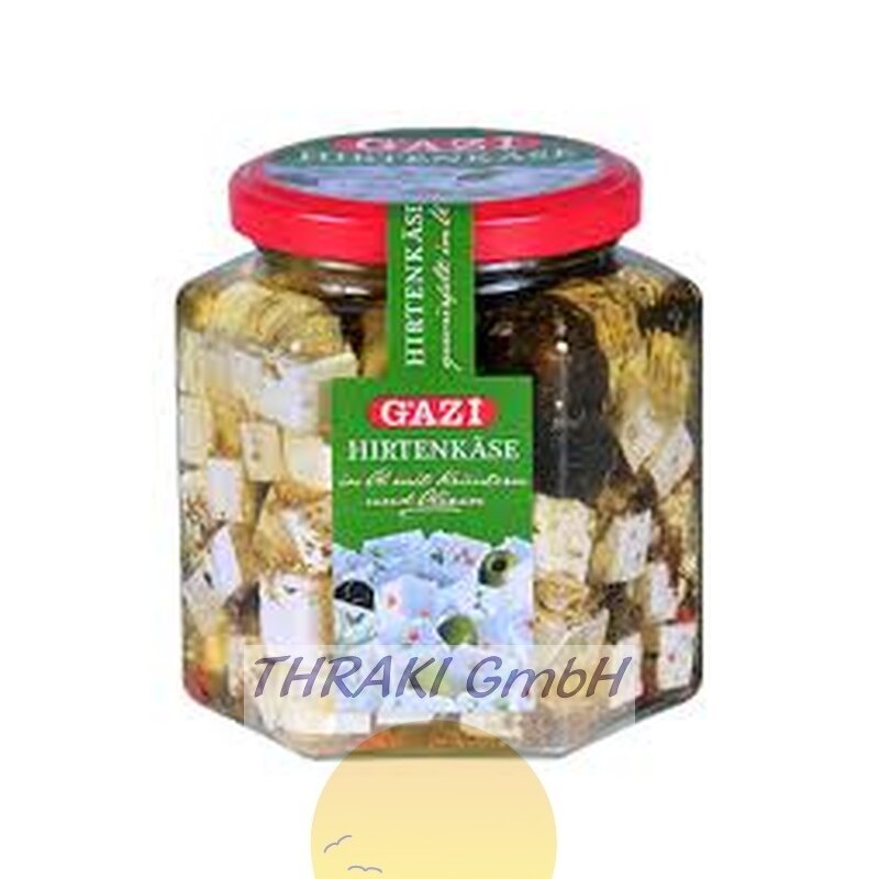 Gazi Würfelkäse mit Oliven im Glas 375gr