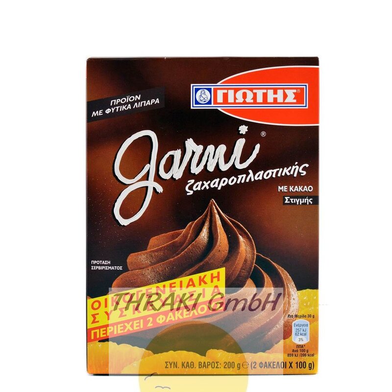 Mit Giotis Garni können Sie in wenigen Minuten eine flauschige, köstliche Schlagsahne zubereiten, indem Sie sie einfach mit kalter Milch mischen.