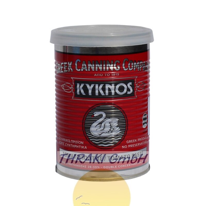 Tomatenmark zweifach konzentriert von Kyknos: die Firma Kyknos wurde 1911 von den Brüdern Michail und Costas Manoussakis gegründet. Kyknos produziert Tomatenpasten und Gourmet Produkte von höchster Qualität. Die Familie Manoussakis ist Garant dafür, dass für die Produktion der Kyknos Feinkostartikel ausschließlich die besten Tomaten, Gewürze und andere Zutaten verwendet werden. Die Qualitätsansprüche der Familie sind sehr hoch. Bei der Verarbeitung und Herstellung wird zu 100% auf Konservierungsstoffe und künstliche Farbstoffe verzichtet. Die Feinkostartikel bestechen durch unverfälschten Geschmack und durch hohe Bekömmlichkeit. Der Tomatenmark von Kyknos ist eine feine Zutat für Ihre Tomatensoße und eine gute Basis für Ihren Pizzabelag.