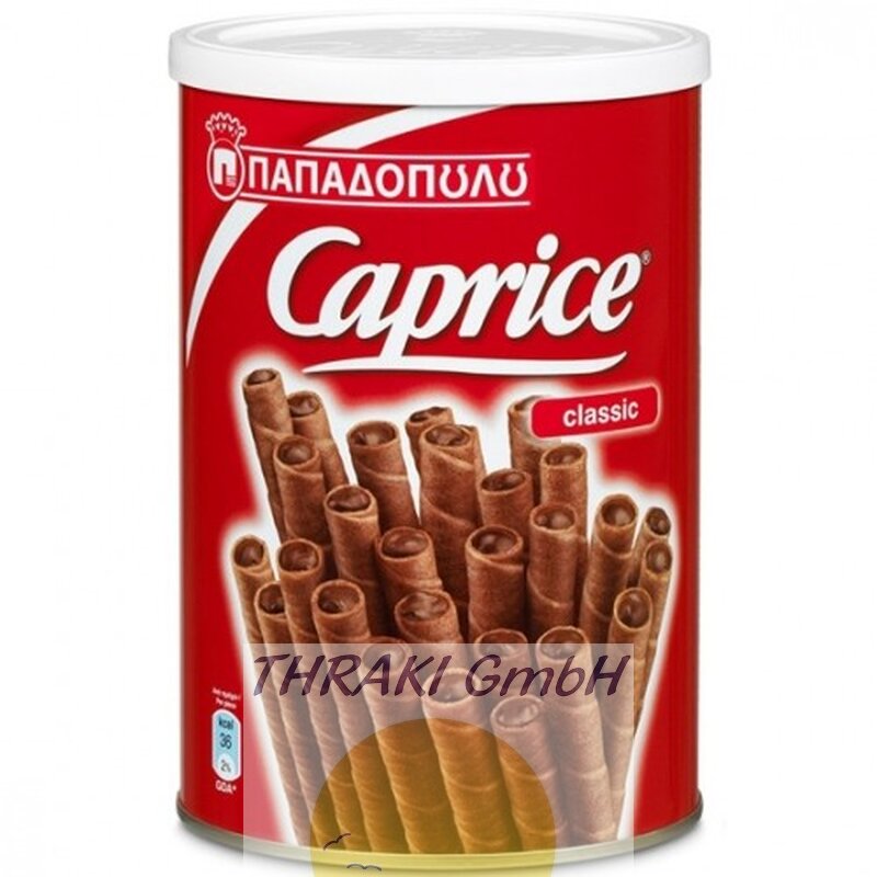 Feine Waffelröllchen mit einer cremigen Haselnuss-Kakao-Creme, die im Mund mit den zarten Waffelröllchen eine herrlich, schmackhafte Kombination eingehen. Genießen Sie diese Waffelröllchen zum Kaffee und Tee, ein Genuss für jede Gelegenheit.